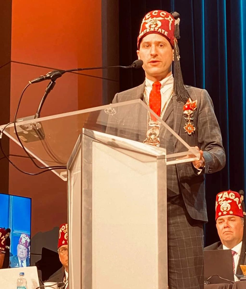Imperial Sir James E. Stolze, Chairman International Development Committee, reporting on "Lubnan Shriners".